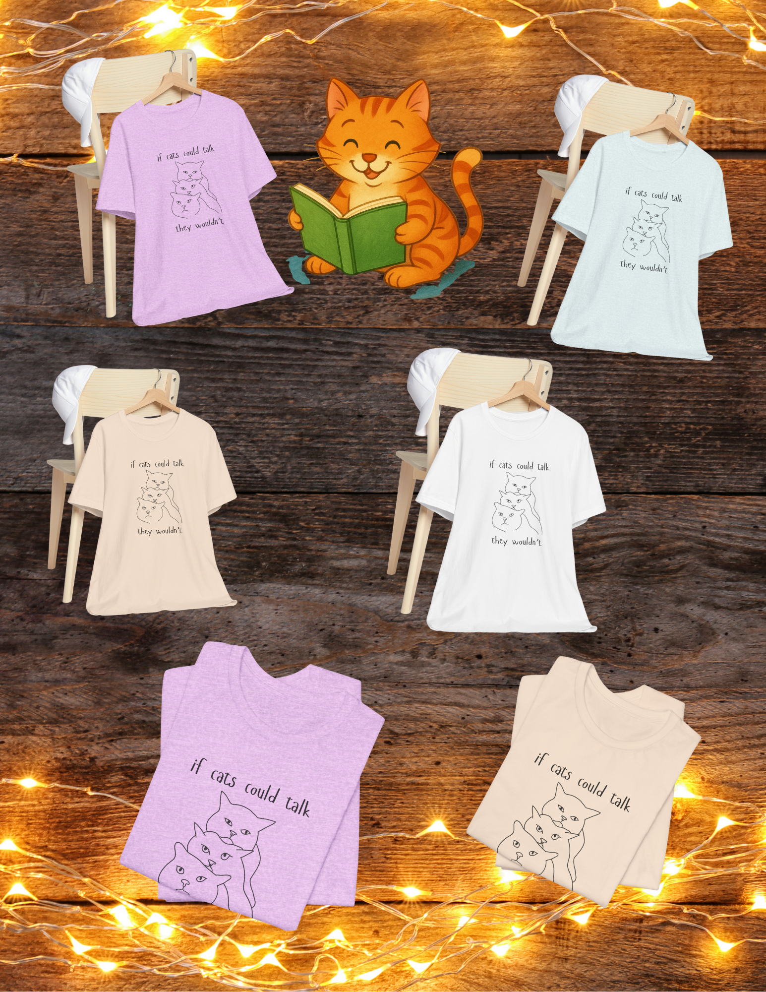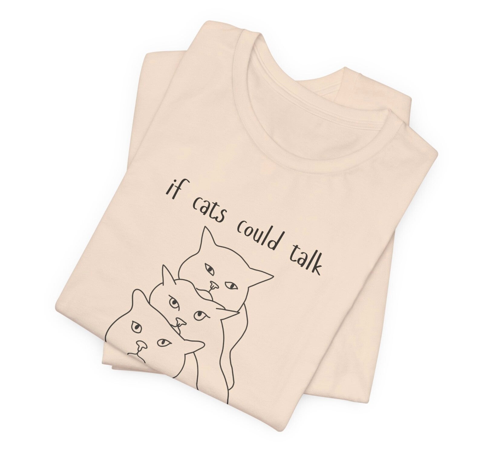 If cats could talk they wouldn't ... would we even know what they are thinking? His is a witty tee is made for cat lovers who appreciate a little feline attitude. This is a classic soft Bella Canva tee it has a ribbed knit collar to bolster shaping and the shoulders are tapered for a better fit over time. Available in multiple colors.